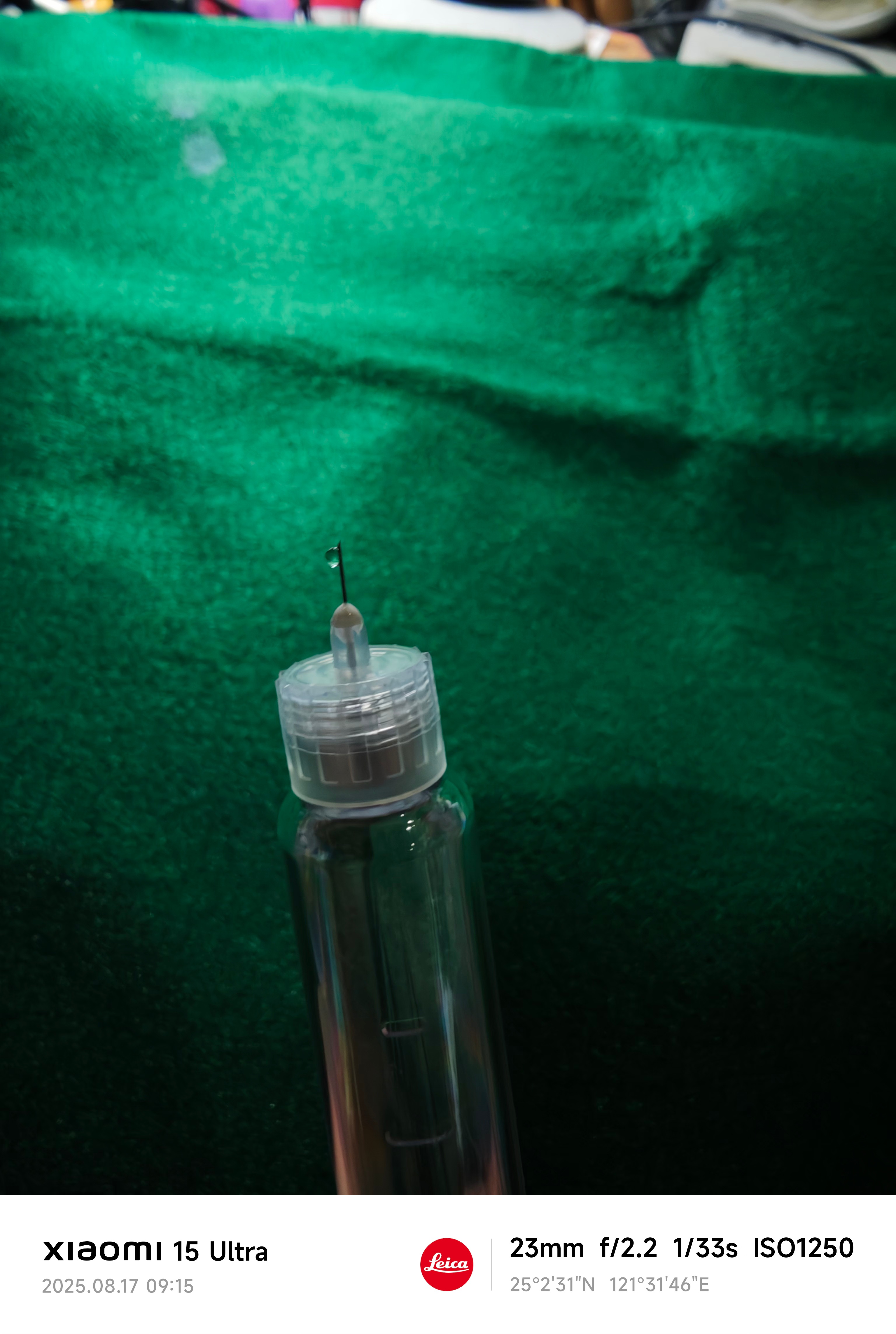 針頭插上去、筆朝上敲了幾下,針頭上就有藥滴了,還沒照仿單轉兩個click排氣欸!